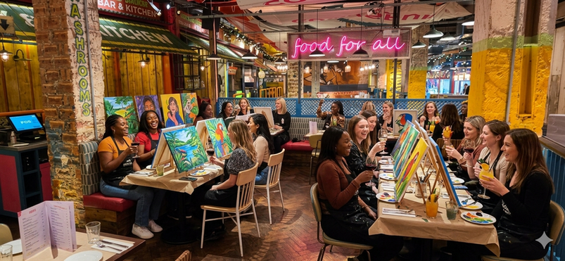 Join us at the very popular Turtle Bay in Newcastle city centre. 2 Cocktails for £13. Beginners Welcome. Choice of 300 paintings.